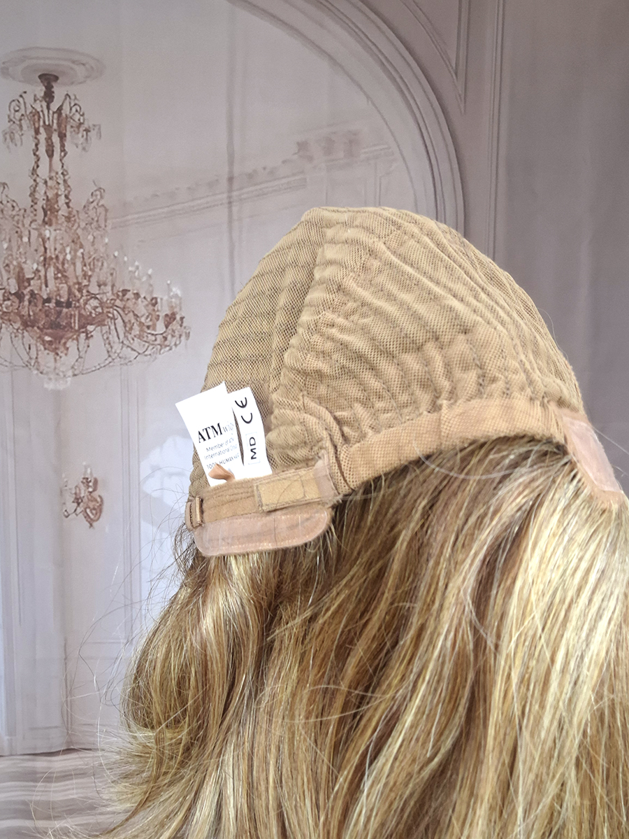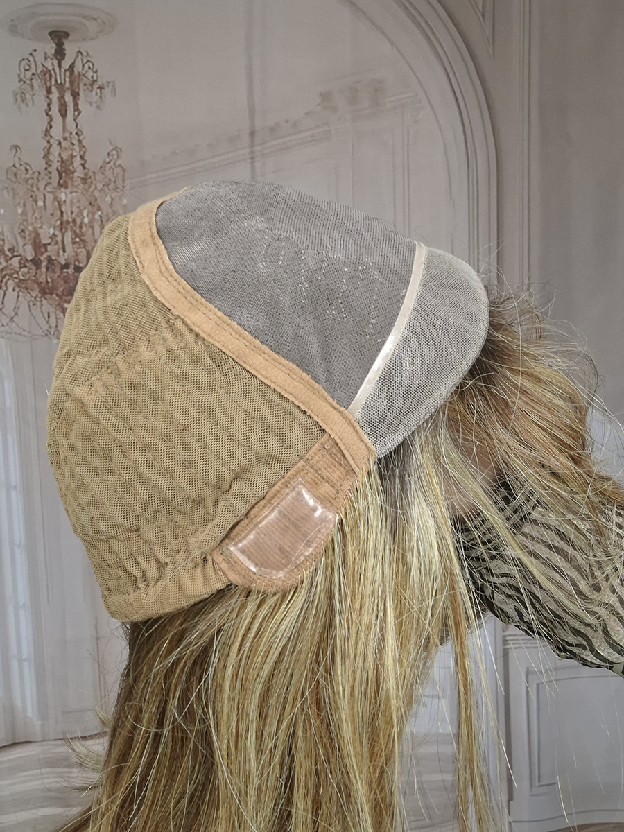Baza peruki wykonana jest w technologii Hybrid, łączącej delikatny monofilament z miękką, wewnętrzną siateczką komfortową.