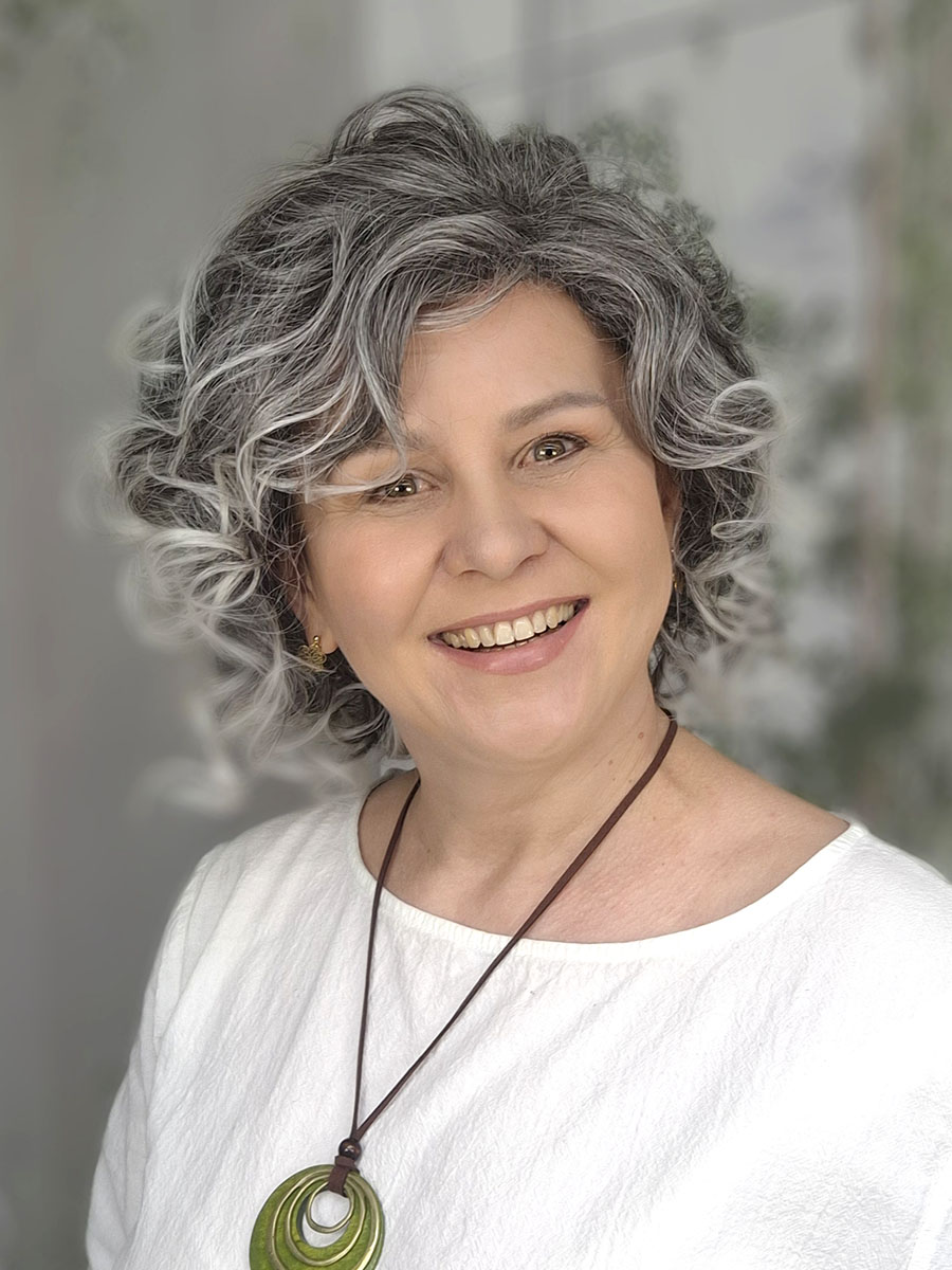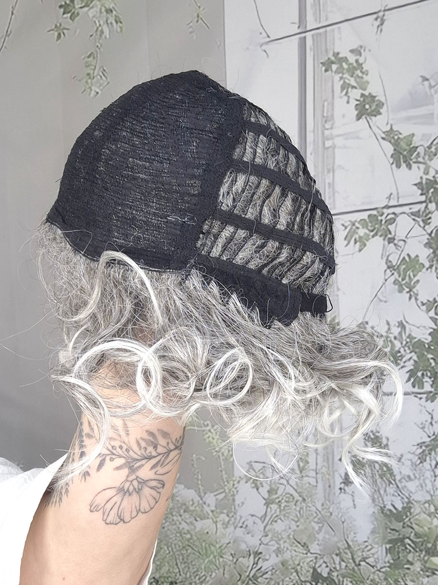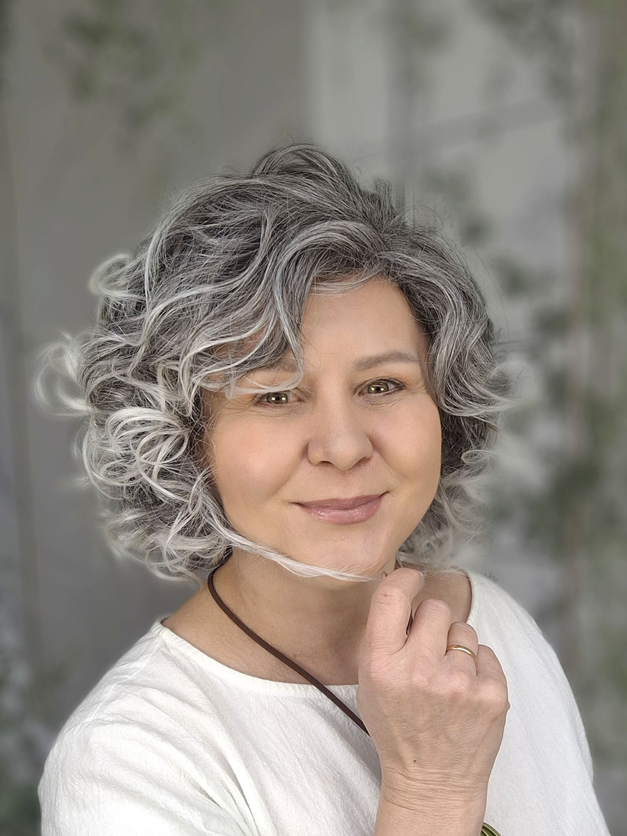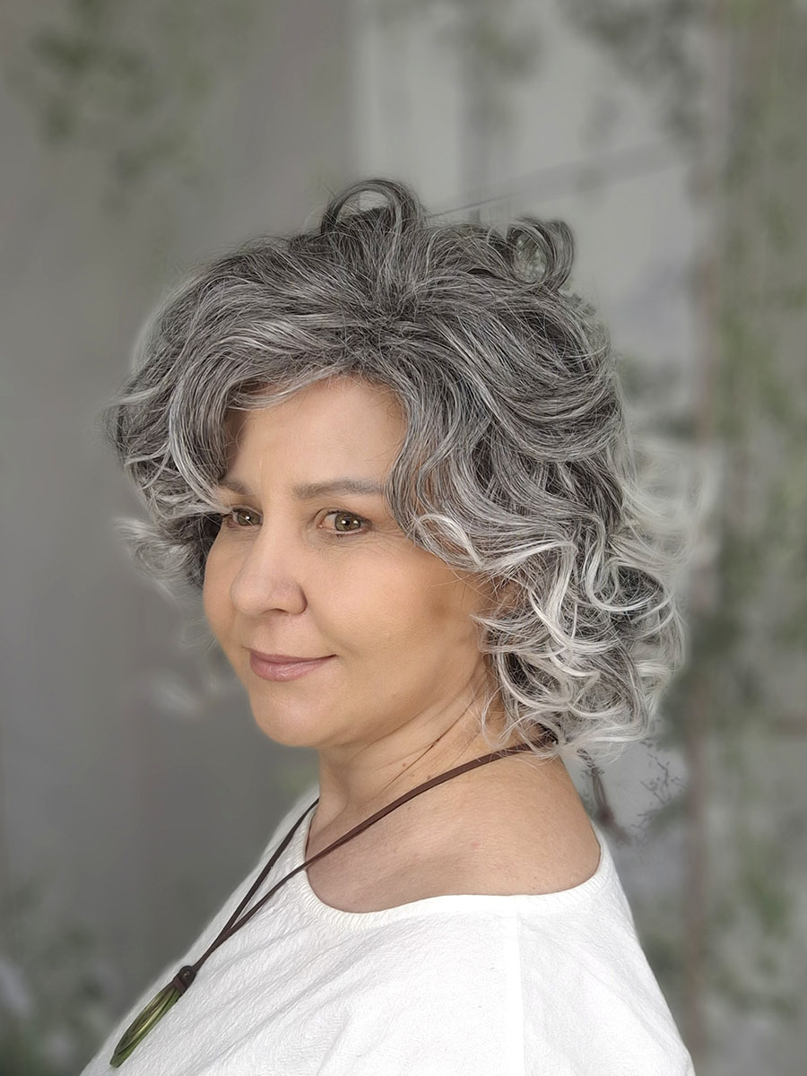 Model został wykonany z włosów syntetycznych termicznych Future, odpornych na wysoką temperaturę, które doskonale imitują naturalne włosy i pozwalają zachować sprężystość skrętu. Loki są miękkie, przyjemne w dotyku i wyraźnie zarysowane, co nadaje fryzurze elegancki, kobiecy charakter. To styl, który sprawdzi się zarówno na co dzień, jak i podczas wyjątkowych okazji – wystarczy jeden ruch, by cała stylizacja nabrała wyrazistości i klasy.