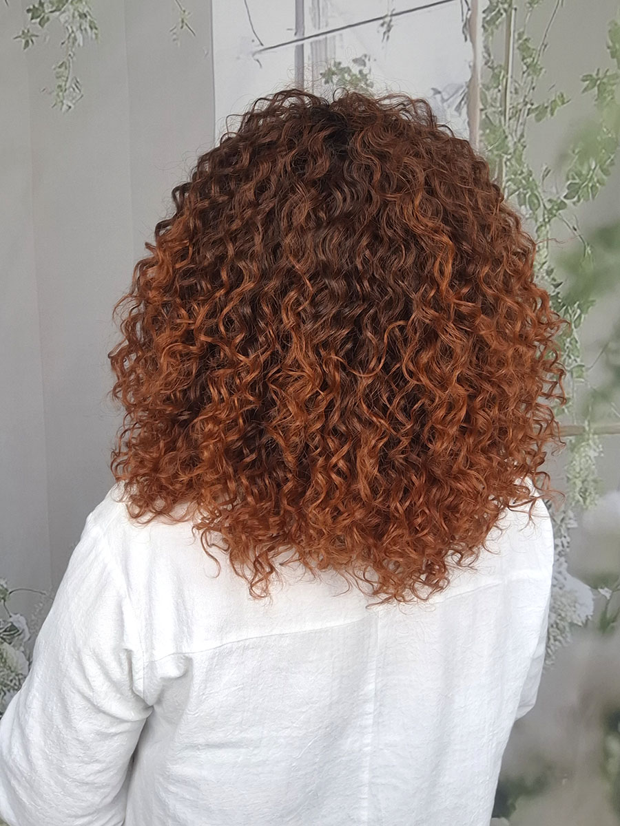 Włosy prezentują się bardzo naturalnie – loki są sprężyste, miękkie wizualnie i pełne objętości. Należy pamiętać, że włosów afro nie czesze się szczotką ani grzebieniem, ponieważ może to naruszyć strukturę skrętu i zniszczyć stylizację. Ten typ włosów układa się właśnie placami – to jego naturalna cecha. Po myciu loki zachowują swój kręcony charakter i wracają do pierwotnej formy.