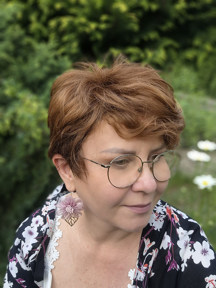 Model Grażyna to krótka fryzura z falowaną grzywką, która wprowadza subtelną asymetrię i delikatny retro charakter. Boki i tył pozostają krótkie, co podkreśla linię karku i szyi, a falująca grzywka nadaje fryzurze lekkości i eleganckiego, ponadczasowego wyglądu.