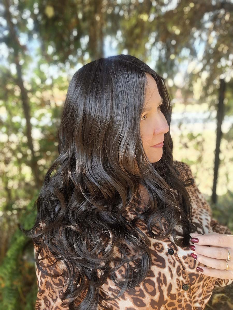 Wyjątkowo ładna peruka z zakręconych, lekkich włosów. Zmysłowo opada oplatając delikatnymi lokami na ramiona i plecy.