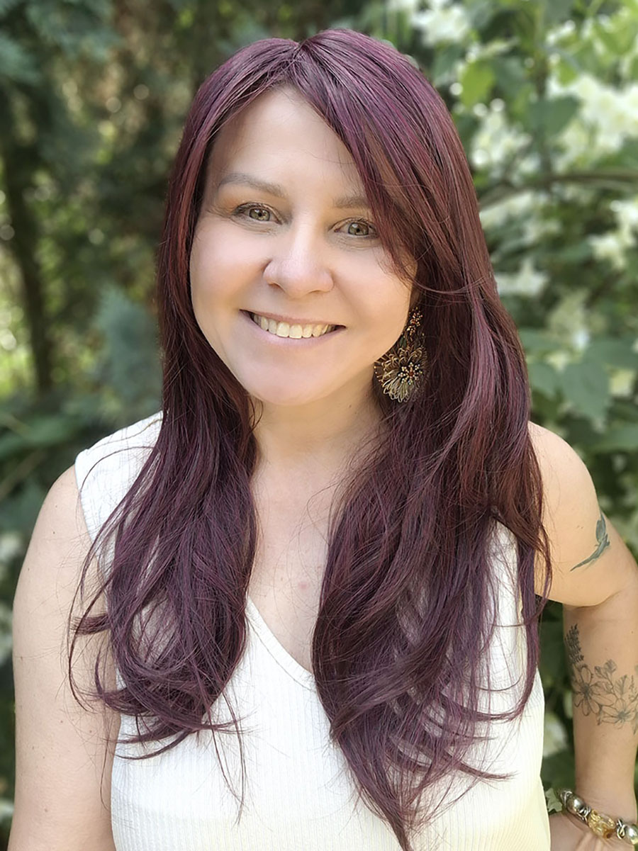 Jest fasonem topperu, który jest wykonany na ekonomicznej bazie (nie posiada wstawek tkanych na siateczkach). Ma krótki przedziałek lateksowy umiejscowiony nieco po prawej stronie od środka osi głowy. Długość włosów sięga za łopatki – jest fryzurą o gładkich łosach z delikatnym akcentem podwiniętych końcówek, które dodają subtelnej objętości. Włosy topperu można razem z własnymi włosami upinać i związywać w różne fryzury.