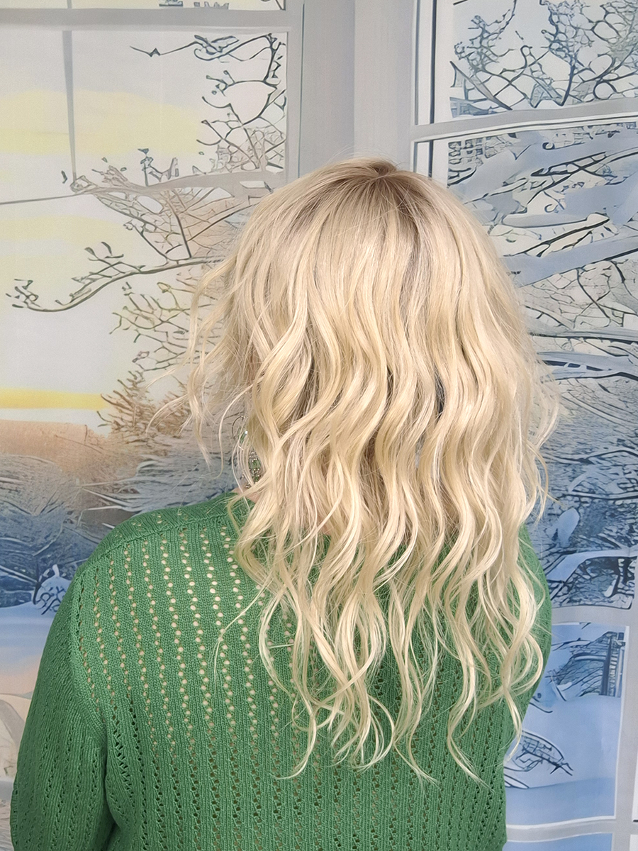 | kolor włosów topperu | ciemny brąz z czekoladowymi refleksami, czarny, jasny beżowy blond, jasny ciepły blond z odrostem, platynowy blond z odrostem, słoneczny blond, średni blond baleyage z odrostem |
