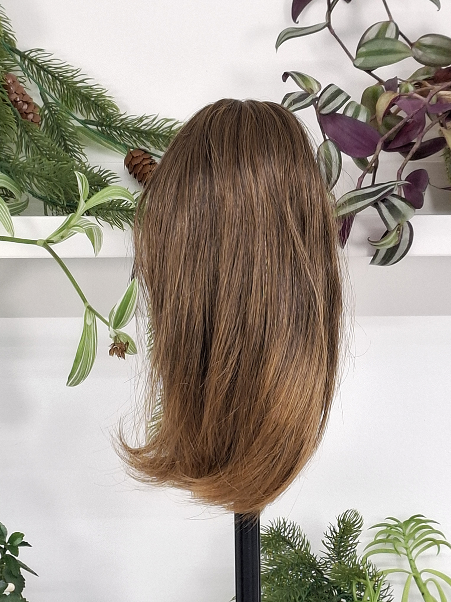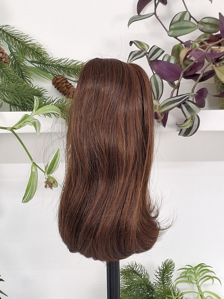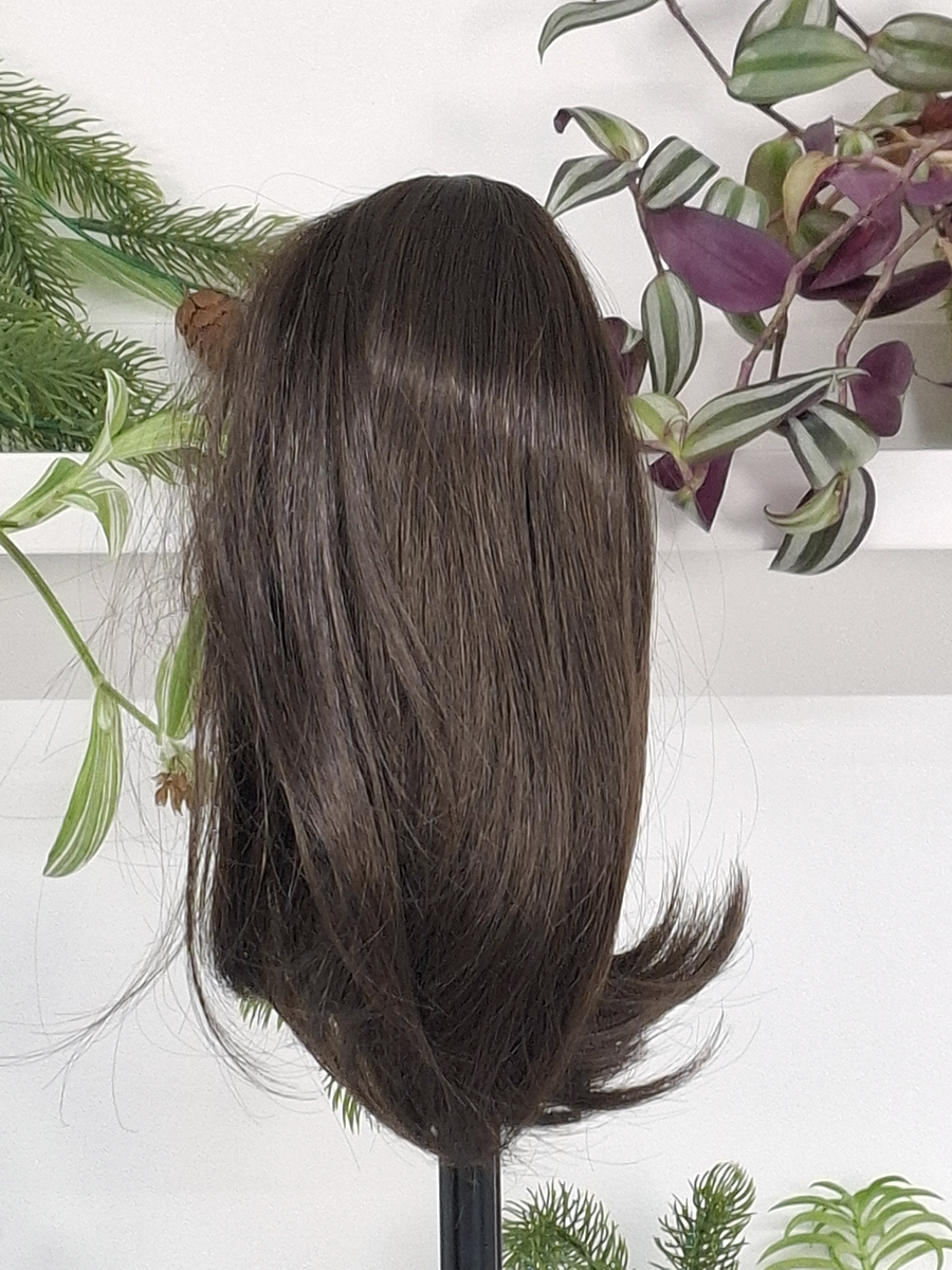 Teresa to klasyczna, ponadczasowa treska, która harmonijnie uzupełnia codzienny wygląd. Miękko podkręcone pod spód końcówki nadają jej subtelnej lekkości, a średnia gęstość sprawia, że prezentuje się naturalnie i spójnie z własnymi włosami.