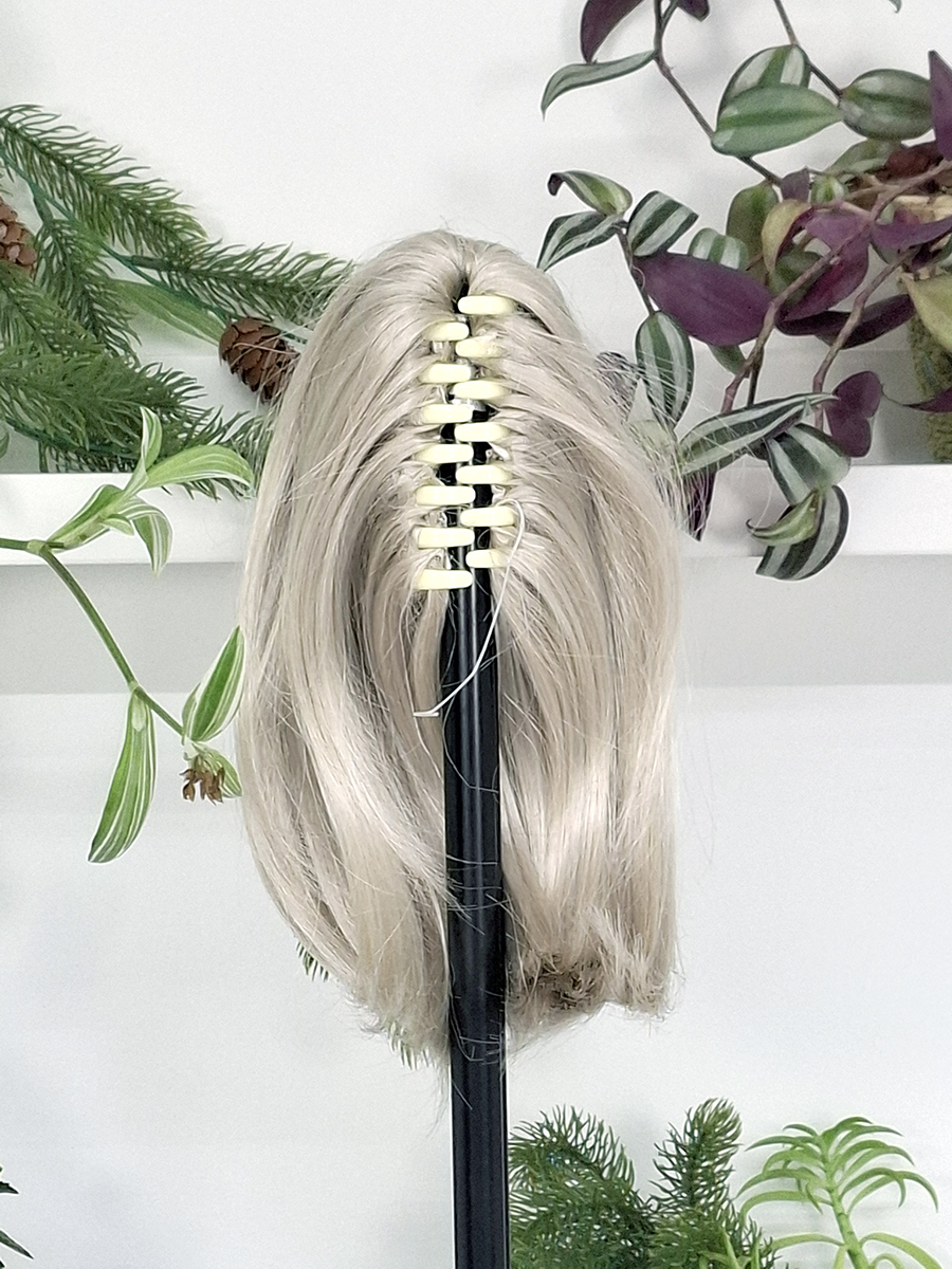 Treska mocowana jest na wygodnej spince typu krab o długości 9 cm, co pozwala na szybkie i komfortowe zakładanie oraz stabilne utrzymanie fryzury przez cały dzień.